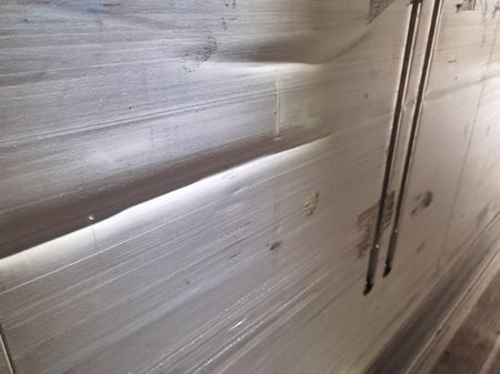 Išpūsta siena iš vidaus su krautuvu.