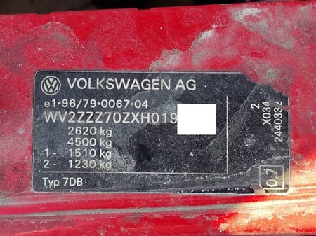 VIN numeris: WV2ZZZ70ZXH019...