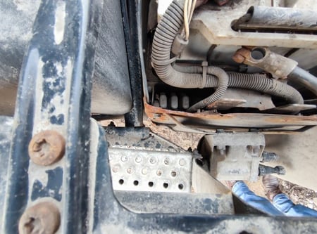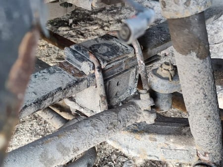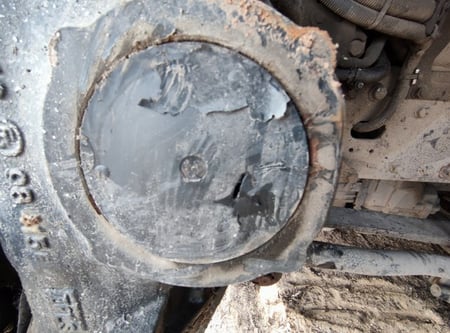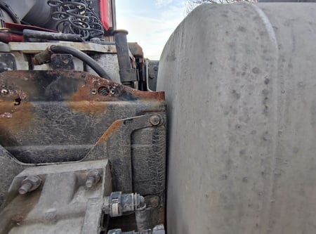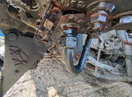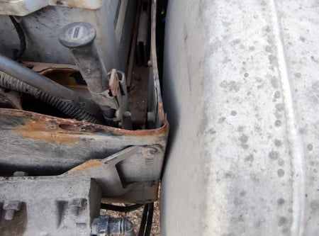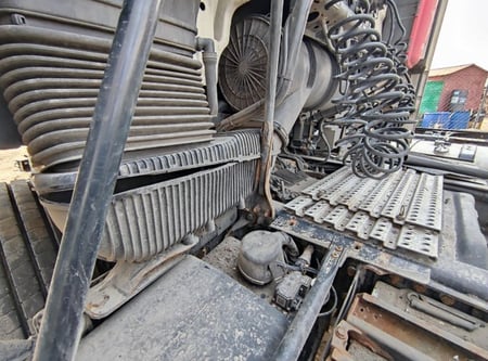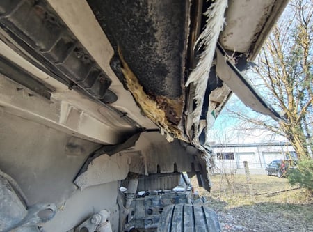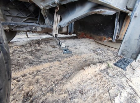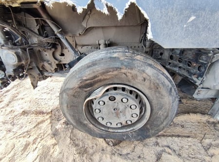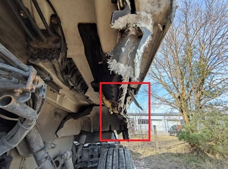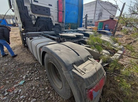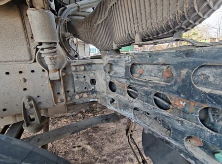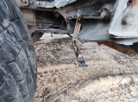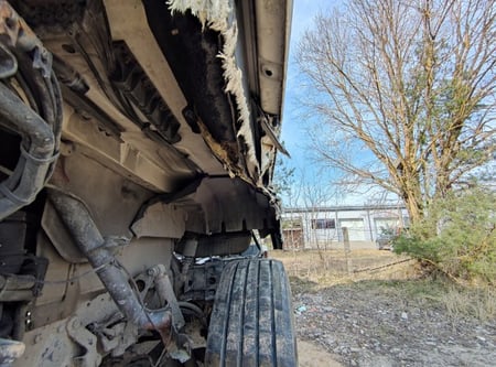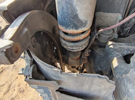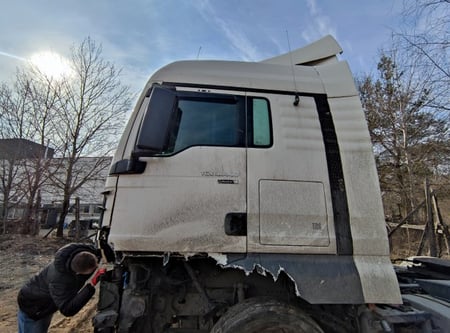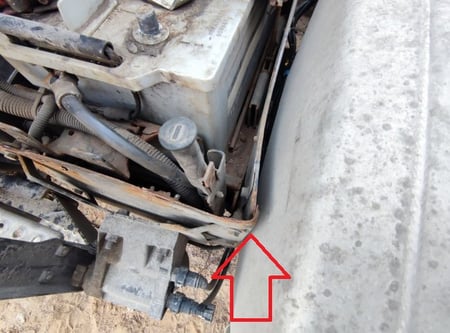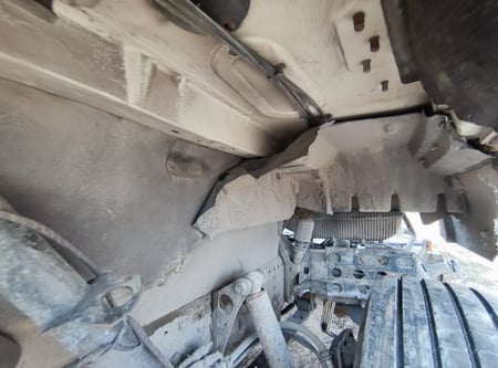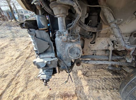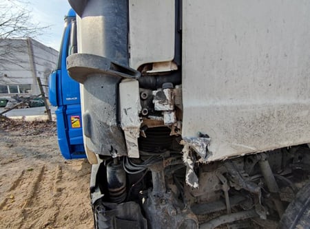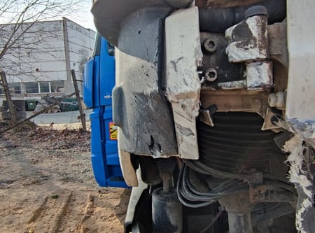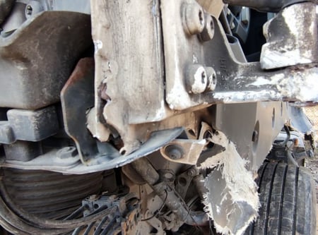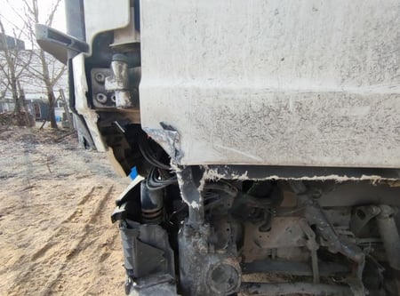 Apgadinta vairo kolonėlė, išmuštas iš vietos priekinis tiltas, sulenktas akumuliatorių laikiklis, deformuotas kuro bakas.